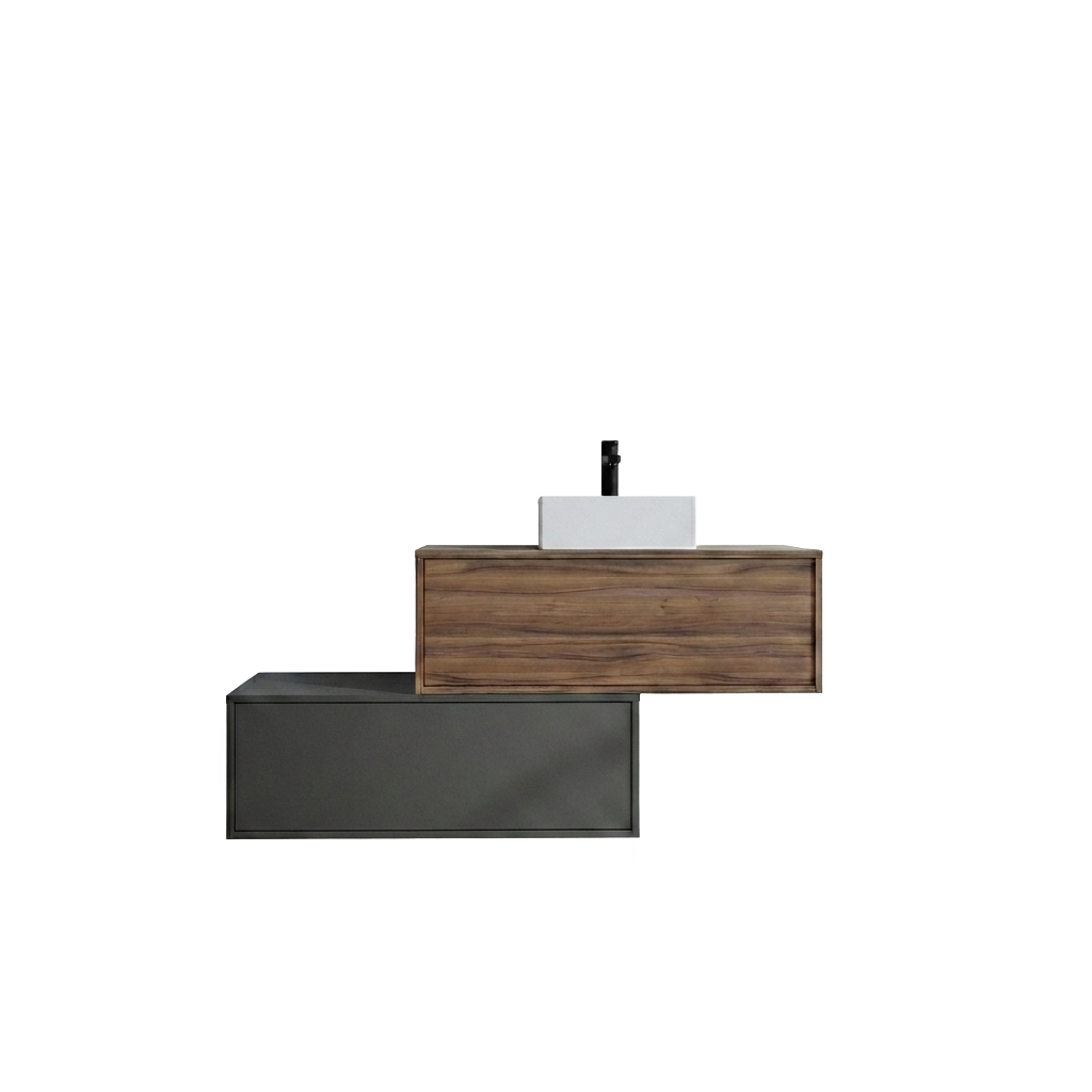 Elevate your bathroom with the Mid-Century Modern Floating Bathroom Vanity Unit. This stylish vanity seamlessly blends form and function with its clean lines and minimalist design. Crafted from durable MDF with a rich walnut veneer finish, this unit provides ample storage space for your bathroom essentials. The floating design creates a sense of spaciousness and enhances the overall aesthetic of your bathroom. Featuring soft-closing drawers and sleek hardware, this vanity unit adds a touch of sophistication and practicality to your daily routine. Perfectly sized for smaller bathrooms or as a statement piece in larger spaces.